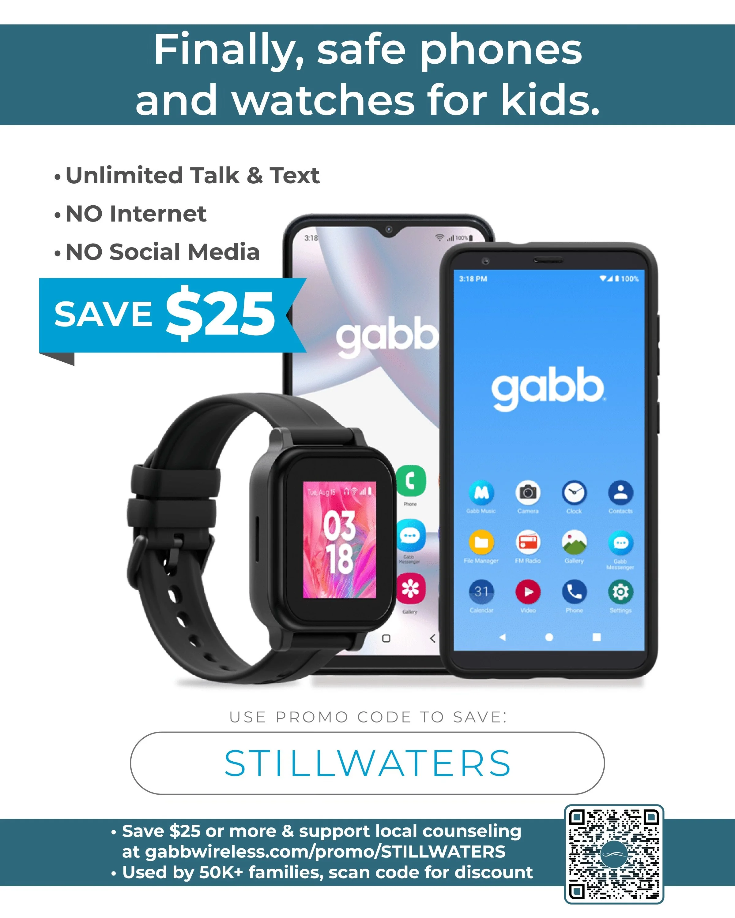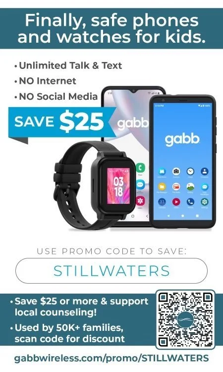 Please pray for our efforts to spread the message about Gabb with these flyers. If you would like David or I to give a presentation to your church, parent group, or school, etc. please let us know. You can get $25 off or more on your device with this link - www.gabb.com/promo/STILLWATERS.